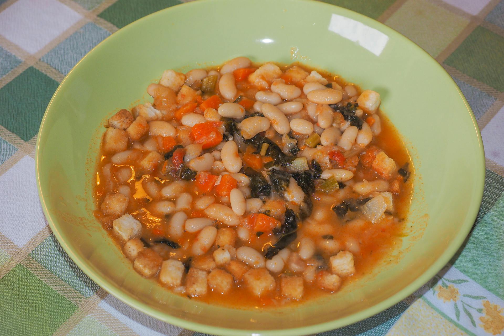 Ribollita is een klassieke, stevige Toscaanse maaltijdsoep gemaakt met brood en verschillende groenten. Er zijn veel variaties, maar de soep bevat steeds palmkool, cannellinibonen en brood.
