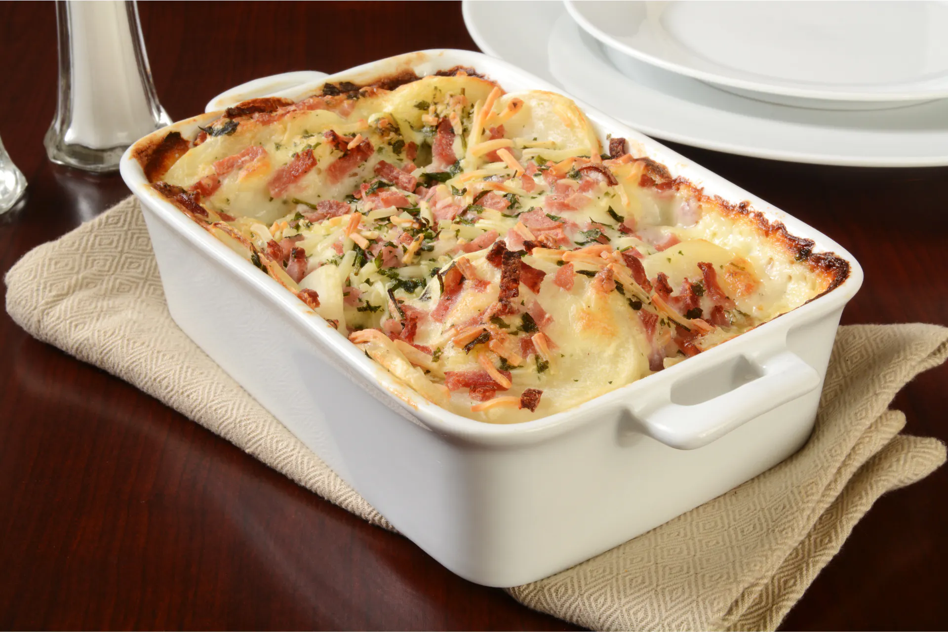 Romige aardappelgratin met een verrassende bitterzoete twist van groenlof en zachte uien. Comfortfood dat makkelijk op tafel staat en toch nét even anders is dan de klassieke gratin.
