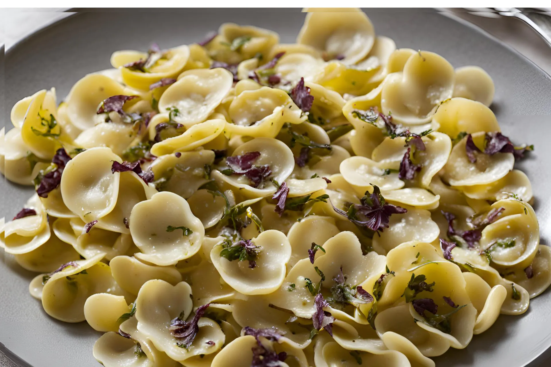 Heerlijke herfstschotel met orecchiette (Italiaans voor oortjes) en groenlof, ook soms suikerbrood genoemd.